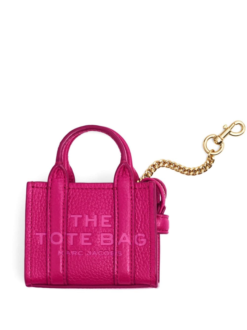 • Marc Jacobs’ signature tote bag is reimagined as a charm. Crafted from grained leather, it can be attached to a bag thanks to the gold-tone lobster-claw clip.