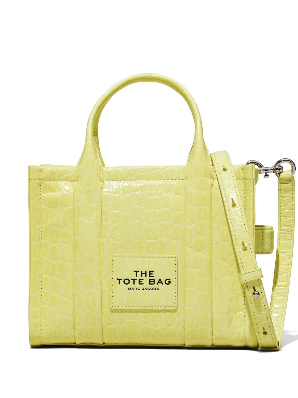 Boasting a mock-croc leather construction and high-shine finish, this tote bag from Marc Jacobs boasts a neon yellow hue that reflects the label’s bold aesthetic.