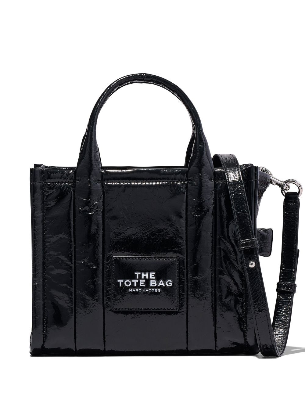 Marc Jacobs presents a new take on its classic tote bag. Keeping its signature structured silhouette, this piece is accented with a logo patch to the front and completed with a crinkled finish.