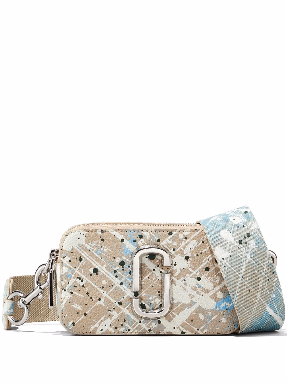 • The Snapshot crossbody bag is a signature style for New York-based brand Marc Jacobs. Named after its camera bag silhouette, this iteration of the iconic accessory is crafted from paint-splattered leather and is finished with an interlocking ‘J’ plaque to the front as a reference to the founder’s initials.