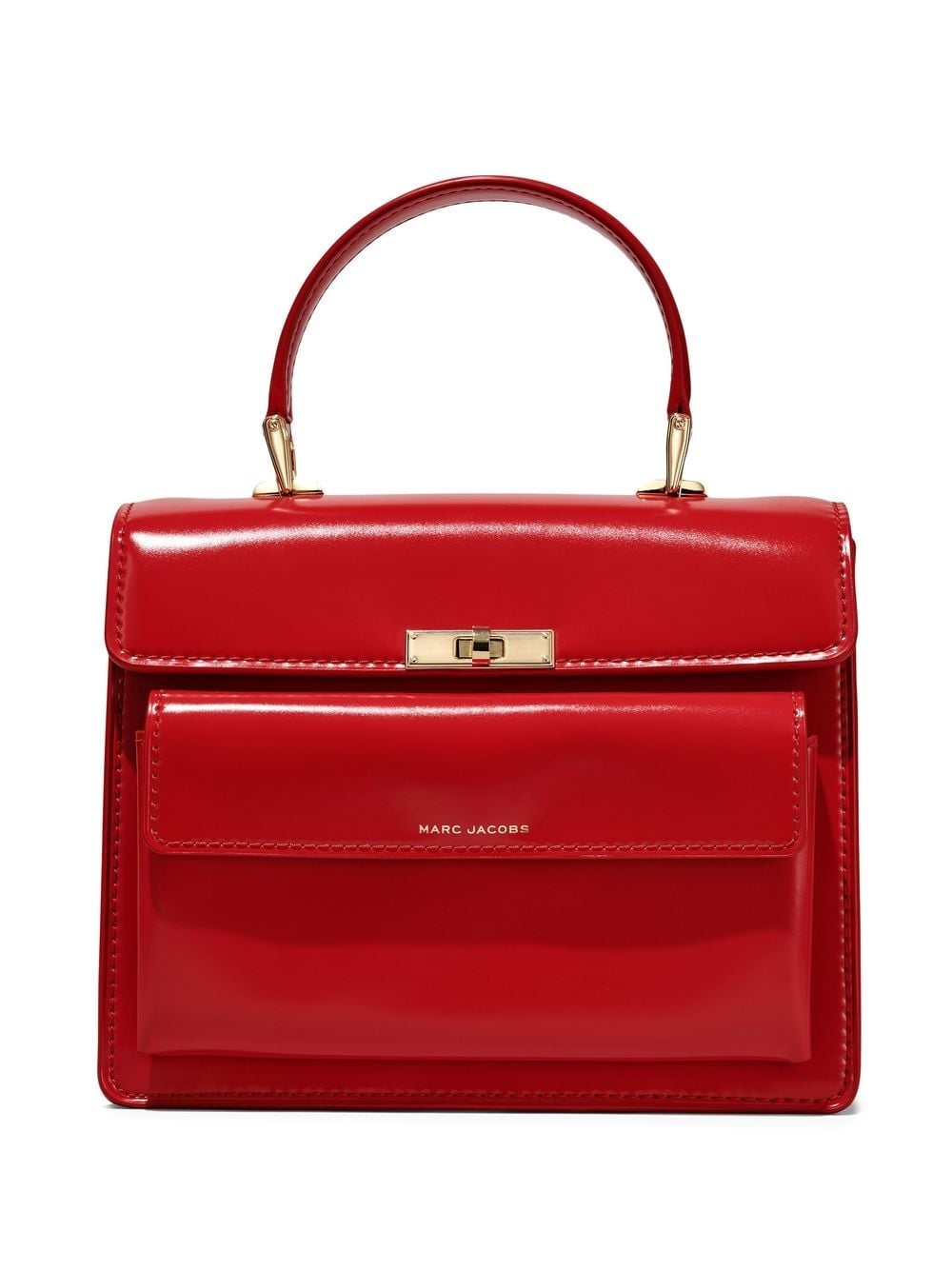 The Uptown shoulder bag from Marc Jacobs featuring red, calf leather, attached scarf, embossed logo to the front, gold-tone hardware, foldover top, twist-lock fastening, partitioned compartment, internal zip-fastening pocket, front flap pocket, single flat top handle and detachable shoulder strap.
