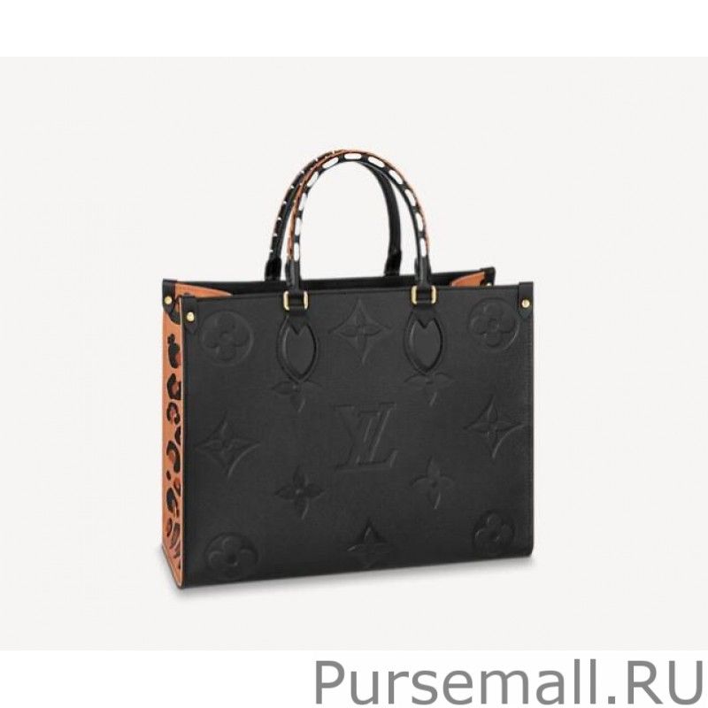 The Onthego MM tote comes from the Fall 2021 Wild at Heart capsule. Made from Monogram Empreinte embossed leather, it features a glossy Monogram motif and leopardprint sides. Fitted with braided top handles as well as longer leather straps, the bag adapts to a variety of carry styles. True to its name, it easily holds a woman’s daily essentials.