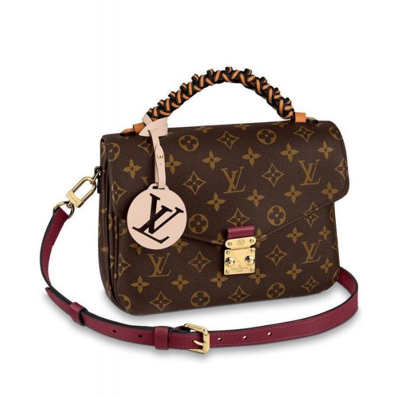 Handbraided and edgedyed, the superb leather handle of this Pochette Metis gives it a playful feel. Made from Monogram canvas and accessorised with an over