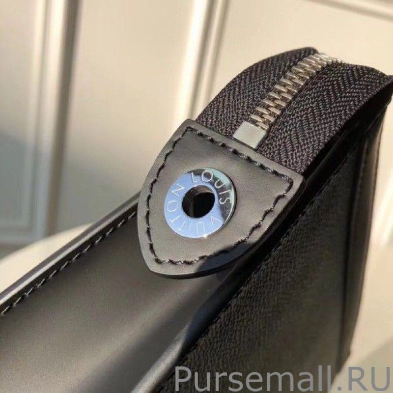 Compact, versatile and totally ontrend, this Pochette Voyage MM in Damier Graphite coated canvas can be slipped into a bag as a travel pouch or handcarried for a trendier look. The spacious interior and gussets mean easy access to all your essentials.