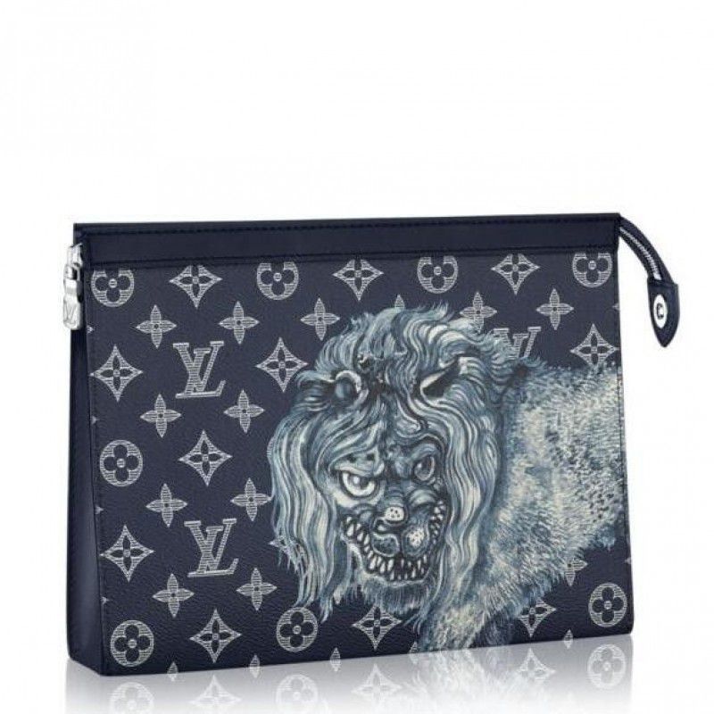 Compact and versatile, this Pochette Voyage MM animated by a playful lion designed by the Chapman Brothers can be slipped into a bag as a travel pouch or handcarried for a trendier look. The spacious interior and gussets mean easy access to all your essentials.