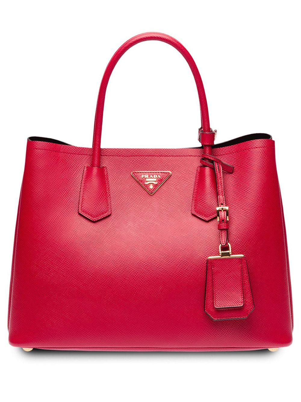 Luxury Italian heritage and expert artisanal craftsmanship lie at the heart of Milanese fashion house Prada’s coveted design aesthetic. Crafted in Italy, this red leather Double tote bag from Prada features top handles, a snap button closure, a main internal compartment, an internal slip pocket, gold-tone hardware, a front logo plaque and a hanging leather tag.