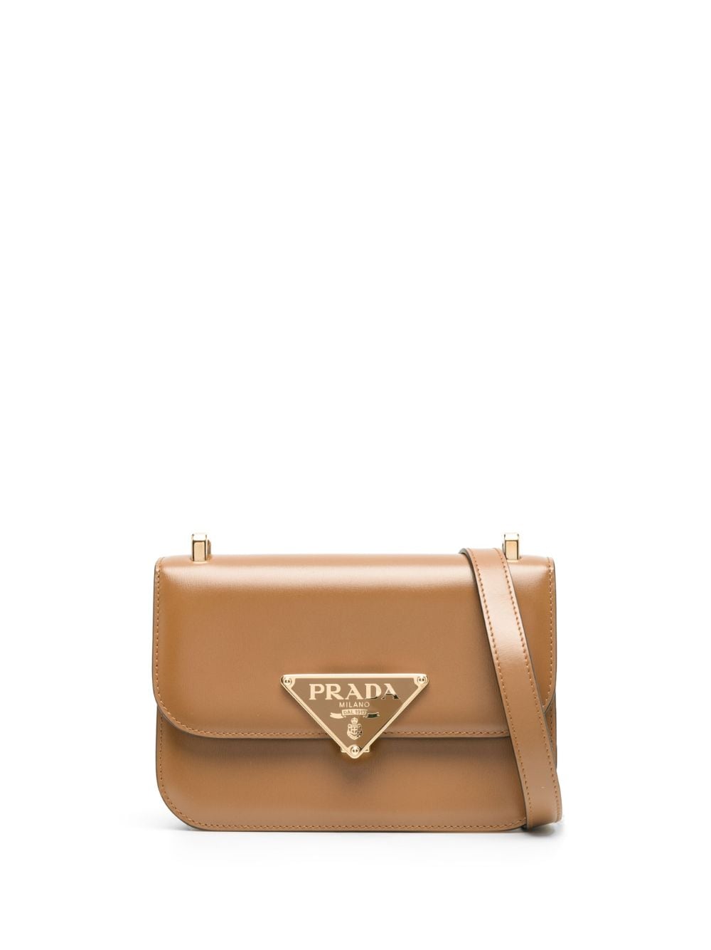 Being the brand’s emblem since it was first used by Mario Prada in 1913, the signature enamel triangle logo takes centre stage in this Emblème design. With a smooth calf leather construction, the piece shows the iconic motif in polished gold-tone hardware.