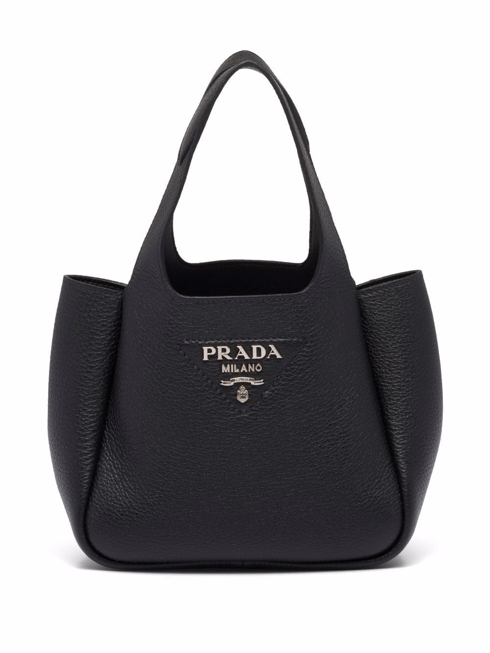 Prada’s triangular logo plaque is an iconic motif for the brand that transcends seasons thanks to its traditional shape and refined lettering. Introduced for the AW20 collection, here this Flou tote bag presents a new interpretation of the triangle logo where stitching detail is paired with a silver-tone logo lettering.