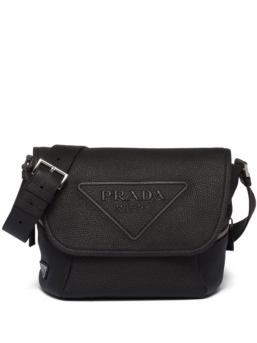 Be the first to review “Prada logo-embossed leather messenger bag”