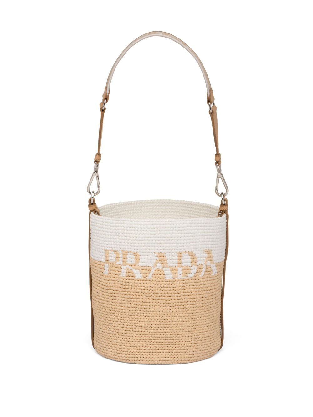 Prada highlights the brand’s history in an opulent way on this bucket bag, by featuring the workmark first used in 1919, in silver-tone hardware. Paired with a two-tone palette, the accessory also has a minimalist feel.