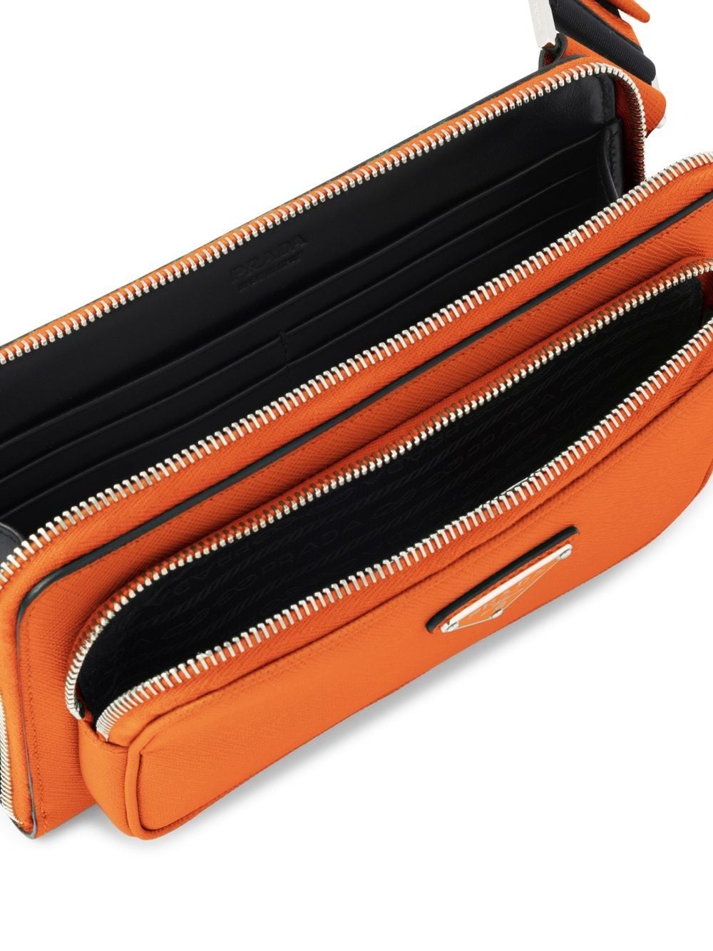 Prada uses the house’s signature Saffiano leather to construct this papaya-hued bag, adorned with a recognizable triangle logo at the front and complete with a zipped compartment for a utilitarian appeal. Finished with industrial-inspired hardware, this SS22 accessory can be worn across the body or on the shoulder thanks to its adjustable strap.