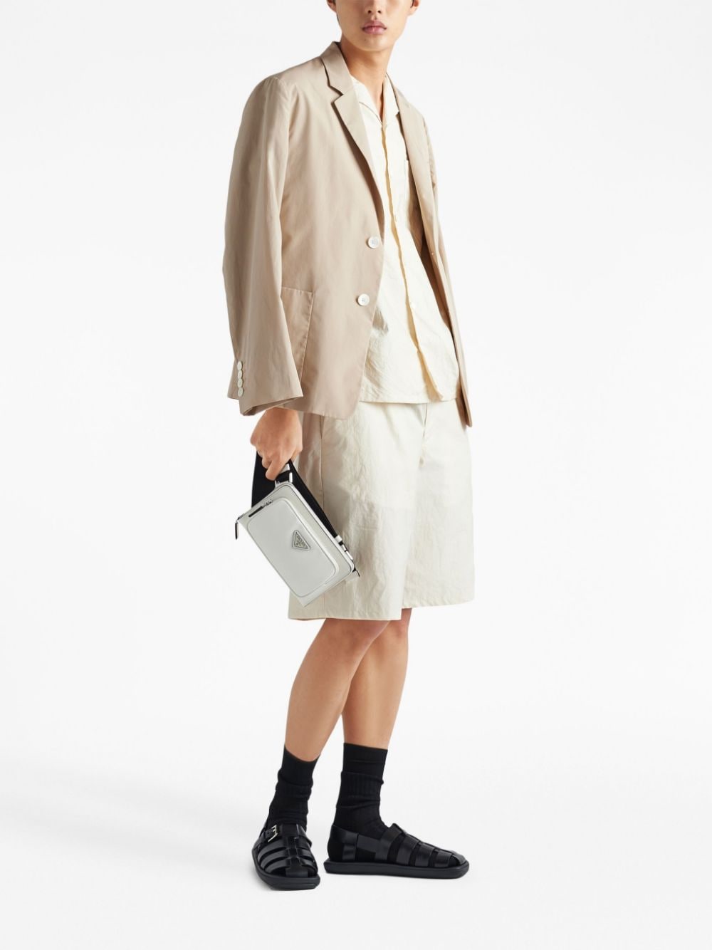 • This messenger bag from Prada is crafted from Saffiano leather to a compact silhouette and adorned with the label’s iconic triangle logo. It comes with a detachable shoulder strap and is fitted with multiple internal card slots.