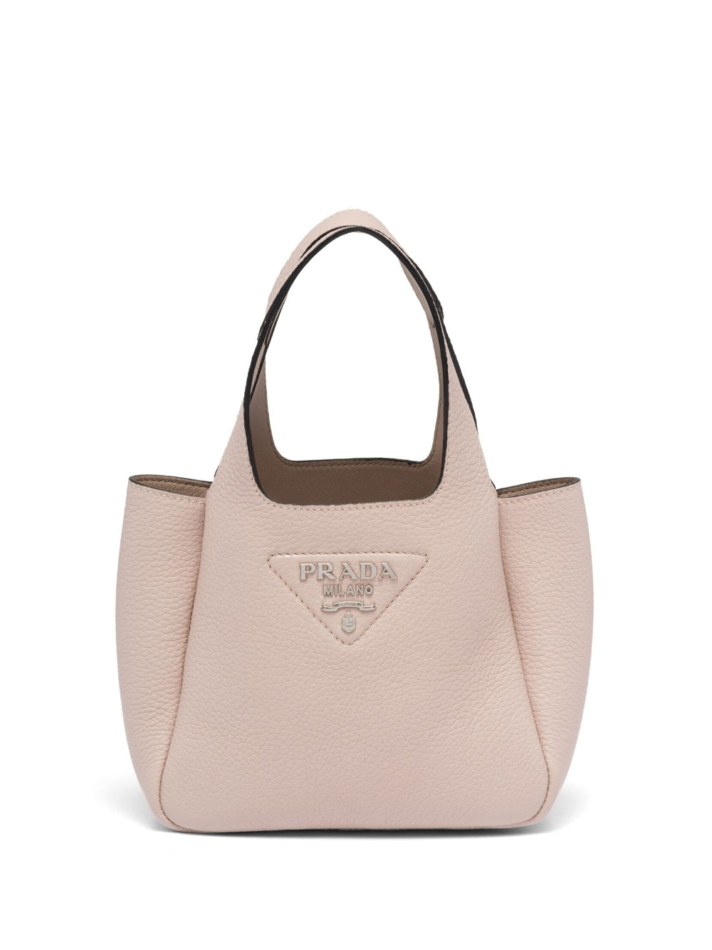 Prada’s tote bag spotlights the band’s signature triangle motif. Crafted from leather, this water lily-pink iteration is topped with the brand’s triangle logo at the centre.