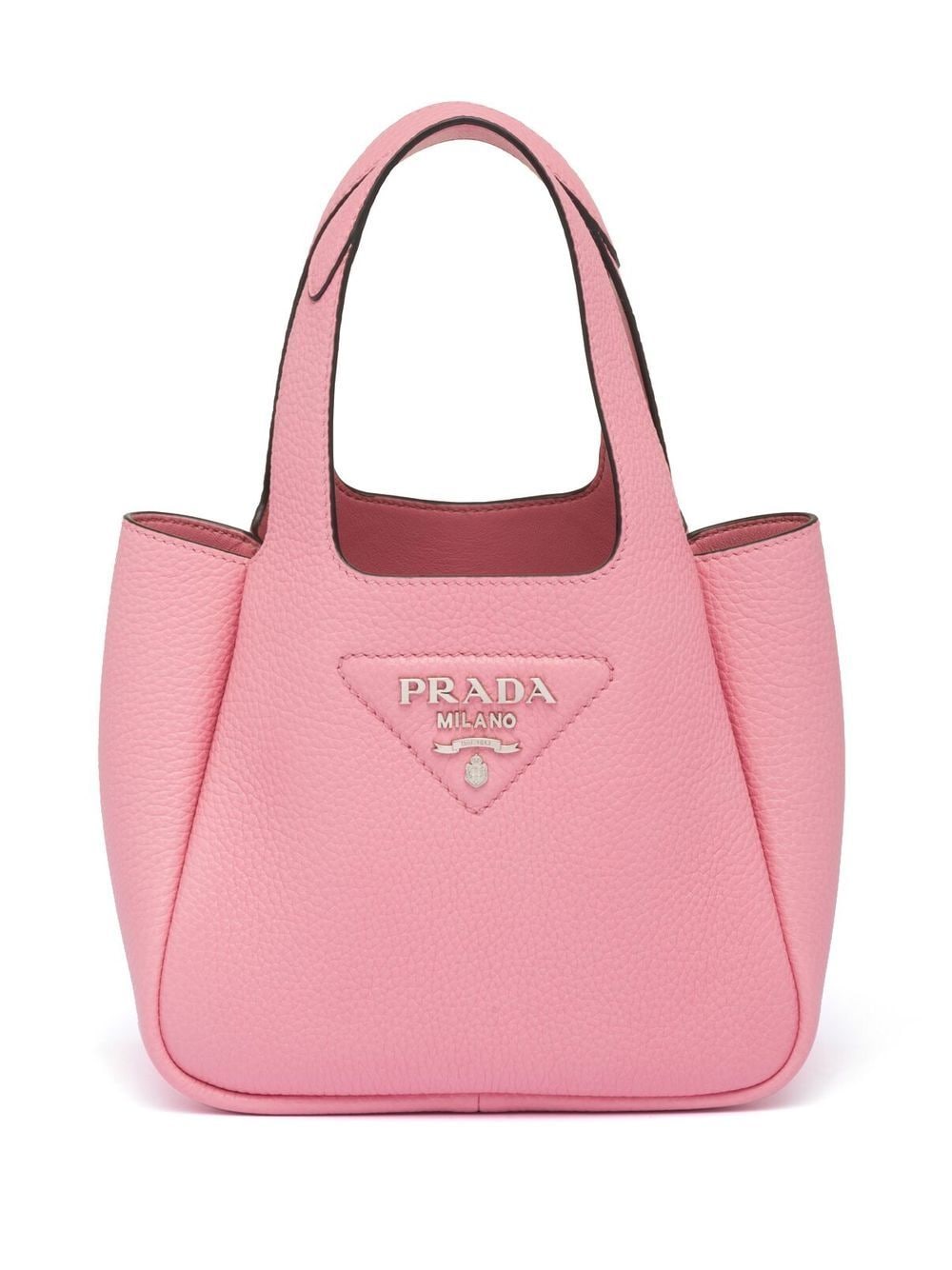 Prada’s tote bag spotlights the band’s signature triangle motif. Crafted from leather, this rose-pink iteration is topped with the brand’s triangle logo at the centre.