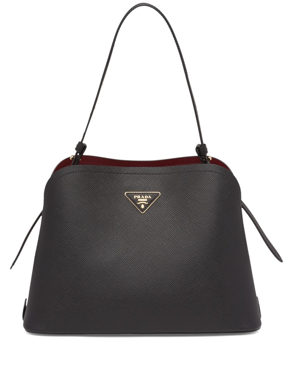 There’s nothing quite like the Prada triangle: it’s a symbol of timeless style and elegantly crafted items you know will be with you for a long time. This black leather Matinee small handbag from Prada will age backwards only! Featuring a detachable and adjustable shoulder strap, a front logo plaque, a top handle, a hanging leather tag, an interior zipped compartment and gold-tone hardware.