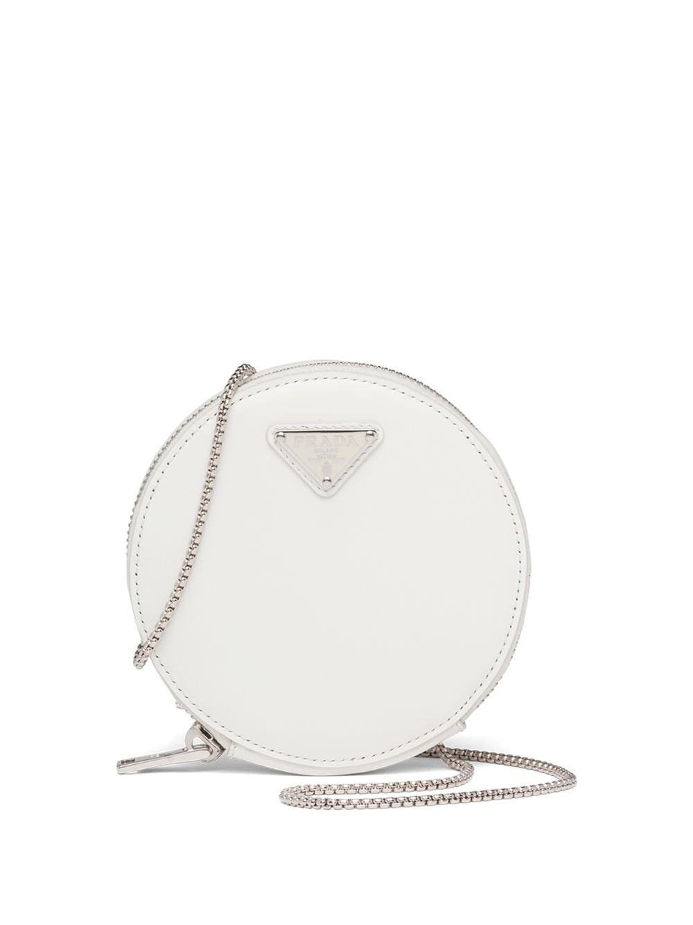 Wearable, chic and timeless. With a recognisable logo patch and a versatile white leather construction, this circular-shaped mini pouch from Prada really is an all-rounder. Bag it.