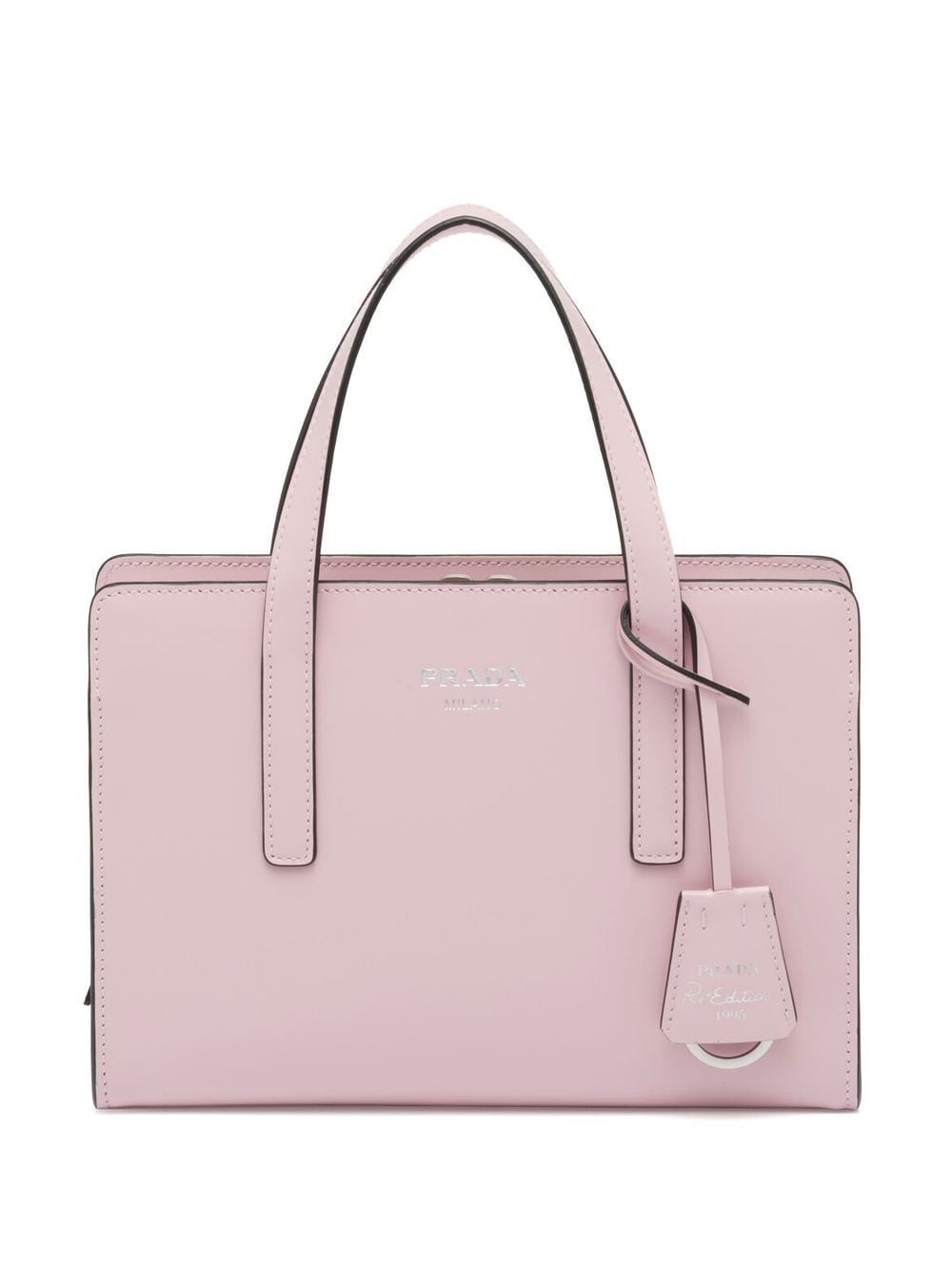 Re-Edition 1995 brushed-leather mini handbag from PRADA featuring rose pink, leather tag, top zip fastening, single shoulder strap, two long top handles, main compartment and leather.