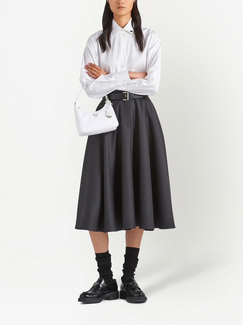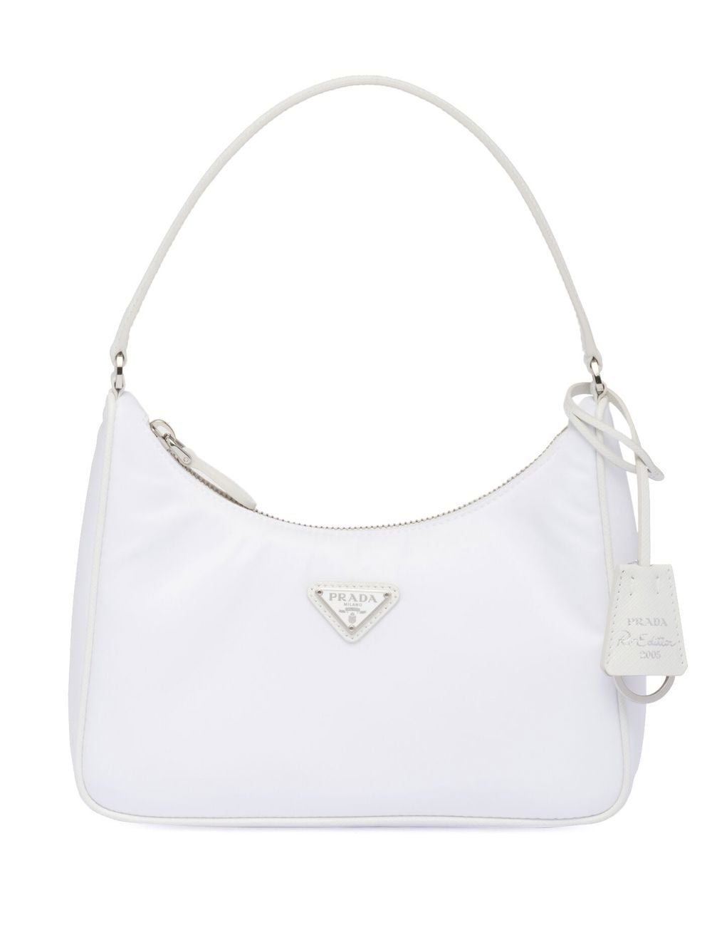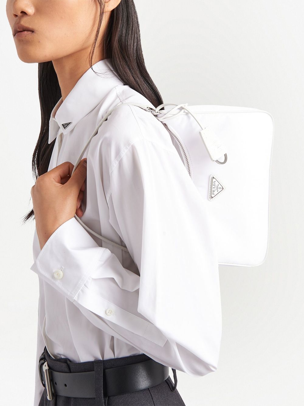 Prada takes a nostalgic approach to design for SS23, as evidenced by this white shoulder bag. Crafted from the brand’s signature Re-Nylon, a regenerated yarn produced from recycled ocean plastic, it’s inspired by the iconic mini hobo bag.