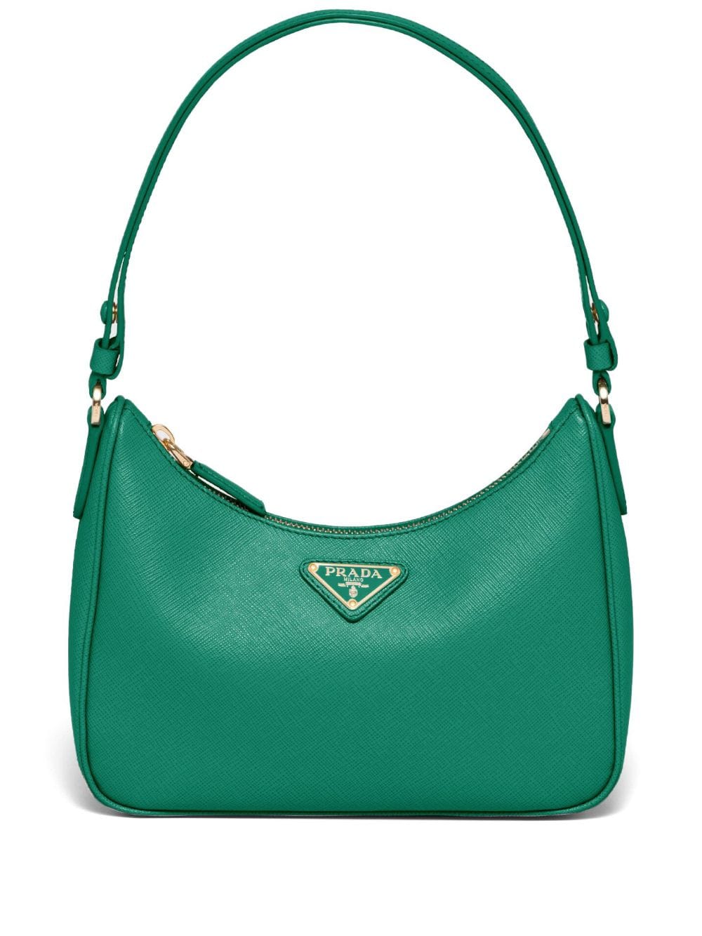 This ‘Mango’ green Re-Edition mini bag is crafted from Prada’s signature Saffiano leather with a crosshatch texture. Branded details – like the iconic triangle logo and keyring attachment – add recognisable final touches.