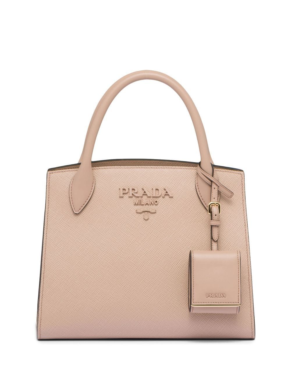 Crafted from Saffiano leather, this bag from Prada has embossed logo lettering at the front of the design. This versatile accessory has two top handles and a detachable shoulder strap.