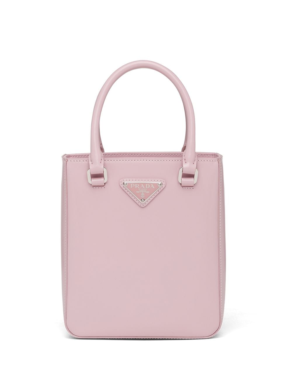 • It’s true that the best things come in small packages. This small triangle plaque tote from Prada has the classic enamel logo plaque on the front and a practical compact size. Small but far from tiny.