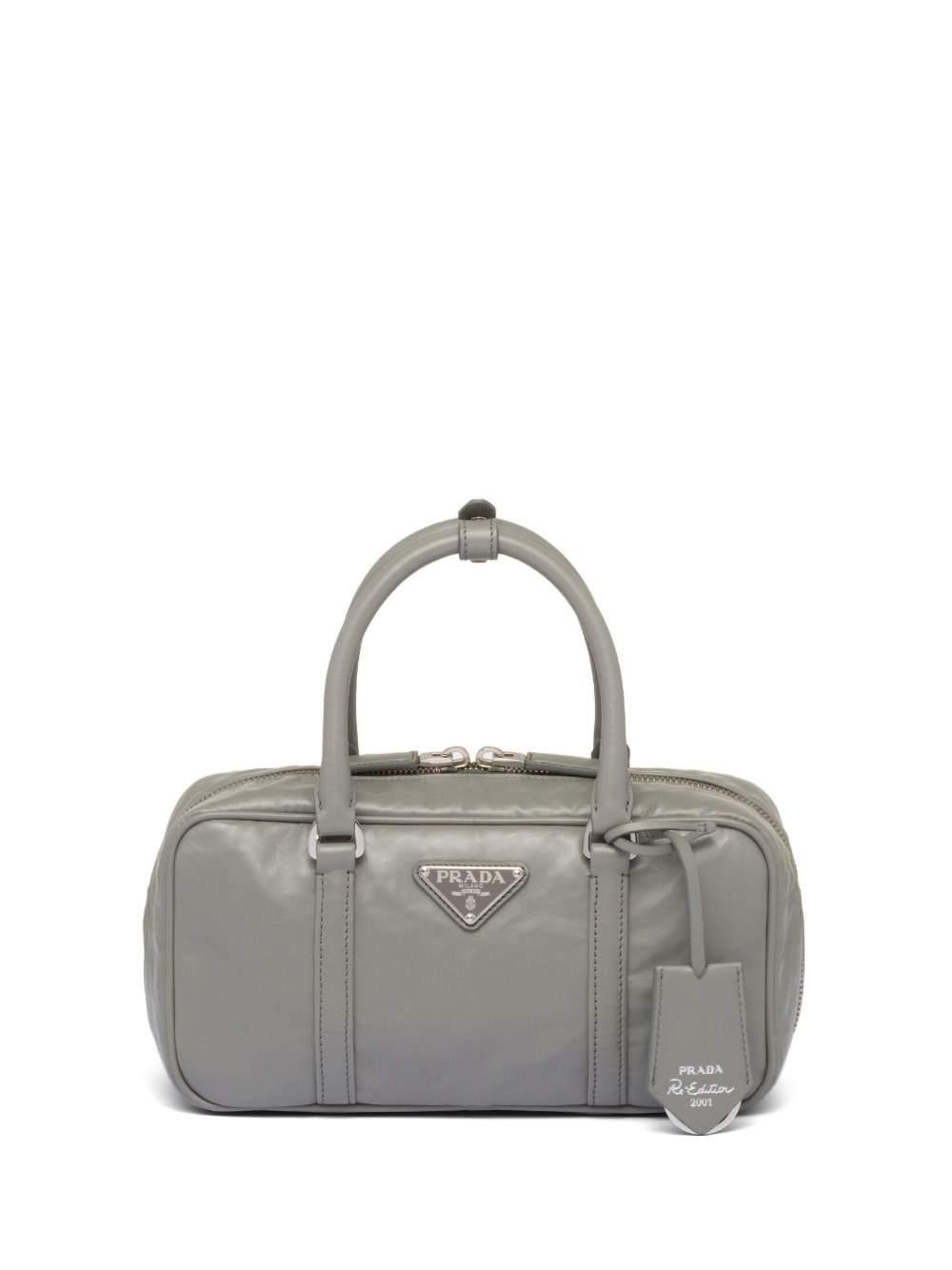 The gold-tone logo plaque that adorns this Prada bag spotlights the wordmark introduced in 1919. Crafted from smooth leather, it’s detailed with quilted topstitching that nods to the brand’s geometric hallmark.