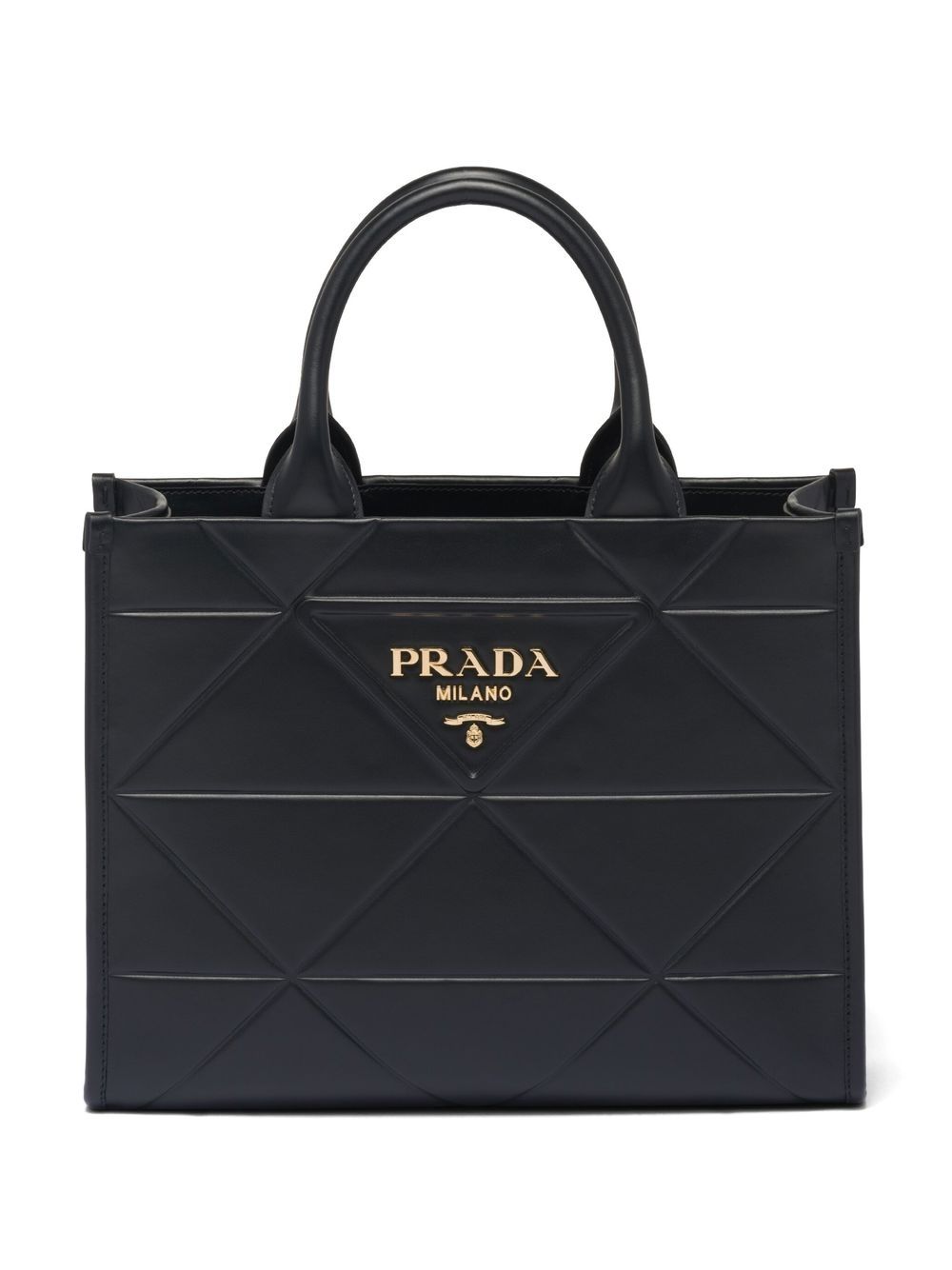 Crafted in Italy from smooth calf leather in black, this tote bag illustrates Prada’s unique attention to detail and craftsmanship. It is finished with the brand’s iconic triangle logo to the front.