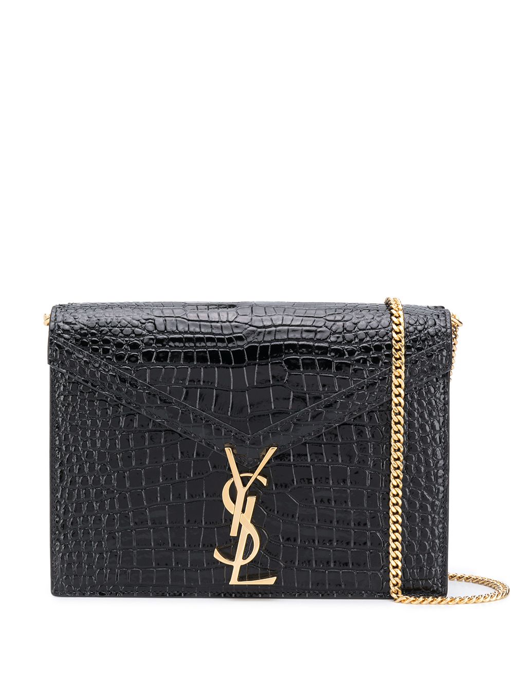 • Saint Laurent continues to lead the way when it comes to timelessly appealing designs, as evidenced by this embossed iteration of the Cassandra bag. This design is carried by a gold-hued chain strap that is echoed by a matching YSL plaque to the front.