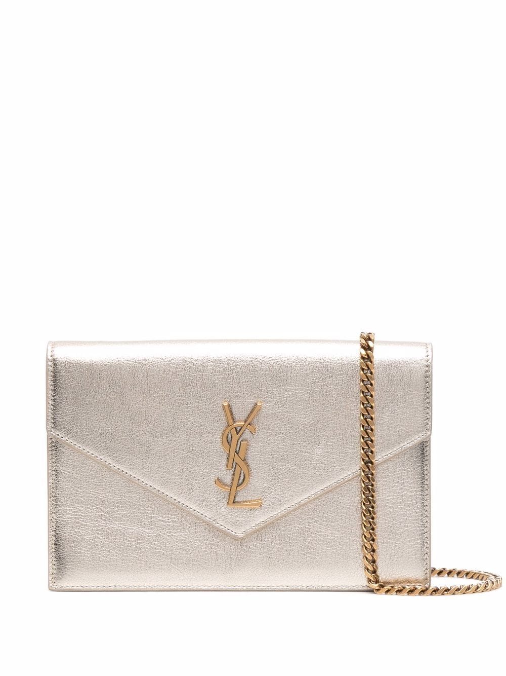 First designed in 1962 by French artist Cassandre, the YSL monogram logo has become an iconic symbol in the fashion world, instantly recognisable as Saint Laurent’s signature. Appearing here in platinum tone, it embellishes the front of this envelope clutch for a refined and unmistakable look. The minimal design features a flap opening, with multiple internal card slots and a practical zip pocket.