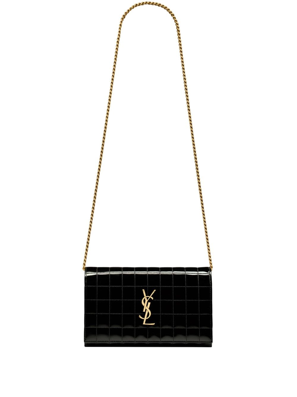 Quilted in matelassé with a grid pattern, this Saint Laurent clutch demonstrates the brand’s perfect fusion of timeless and contemporary. The leather accessory is elevated by its refined gold-tone hardware, including an iconic Cassandre plaque on the front.