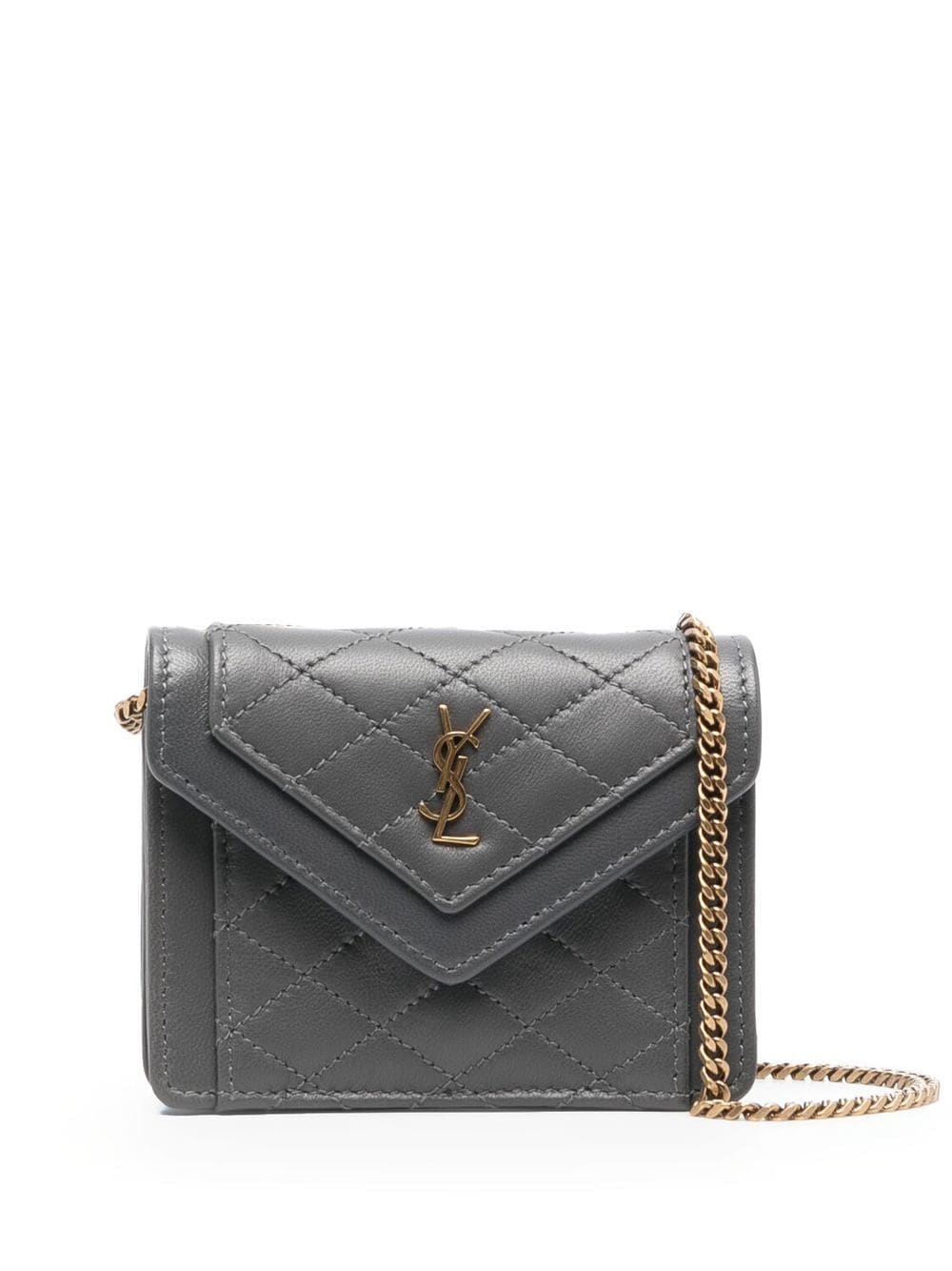 • This iteration of the Gaby bag from Saint Laurent has been expertly crafted in Italy from grey leather and is downsized into a micro shape. The accessory is punctuated with the signature YSL logo plaque on the front.