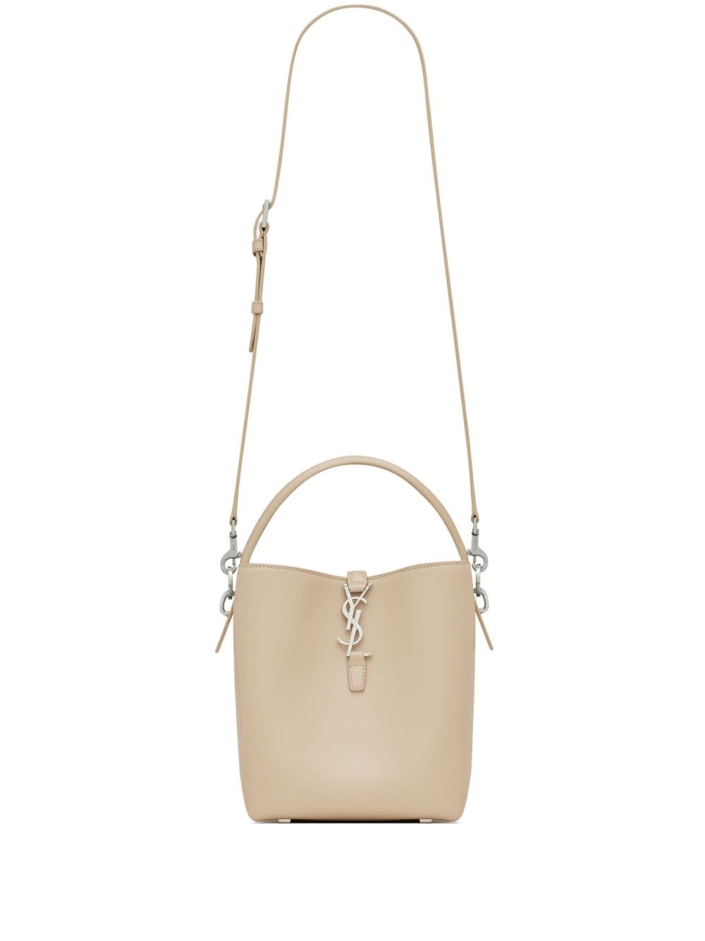 Saint Laurent’s Le 37 bag is crafted from supple beige leather to a spacious bucket silhouette. It’s suspended by a detachable shoulder strap for custom styling and is finished with a silver-tone Cassandre plaque that doubles as a hook fastening.