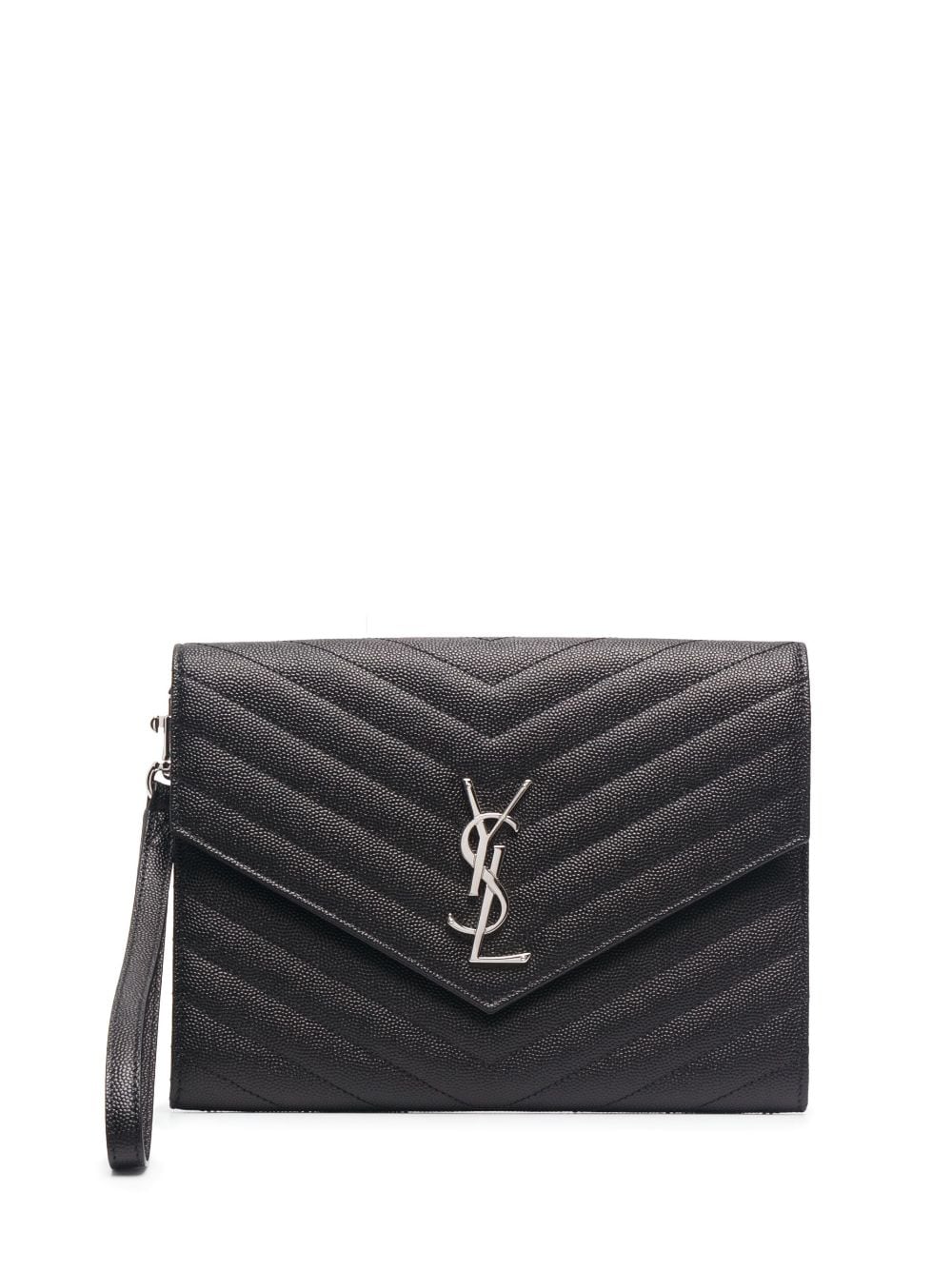 Saint Laurent logo-plaque chevron-quilt clutch bag