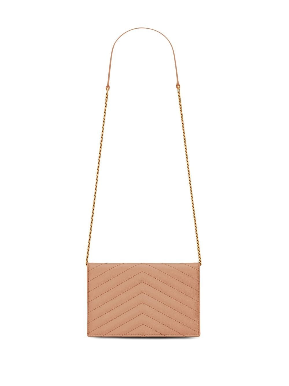 • logo-plaque crossbody bag from SAINT LAURENT featuring peach pink, gold-tone logo plaque, gold-tone hardware, chevron quilting, foldover top, chain-link shoulder strap, main compartment and internal zip-fastening pocket.