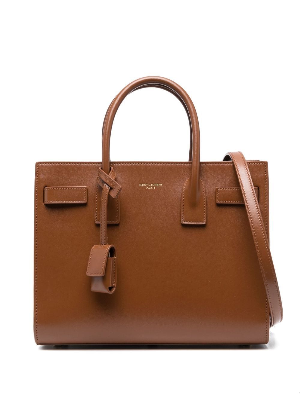 Saint Laurent highlights the signature minimalist design style of this brand on this tote bag from the SS23 collection through the use of a simple logo print. At the front of the design in a gold-tone finish, the detail also adds an understated element of opulence.