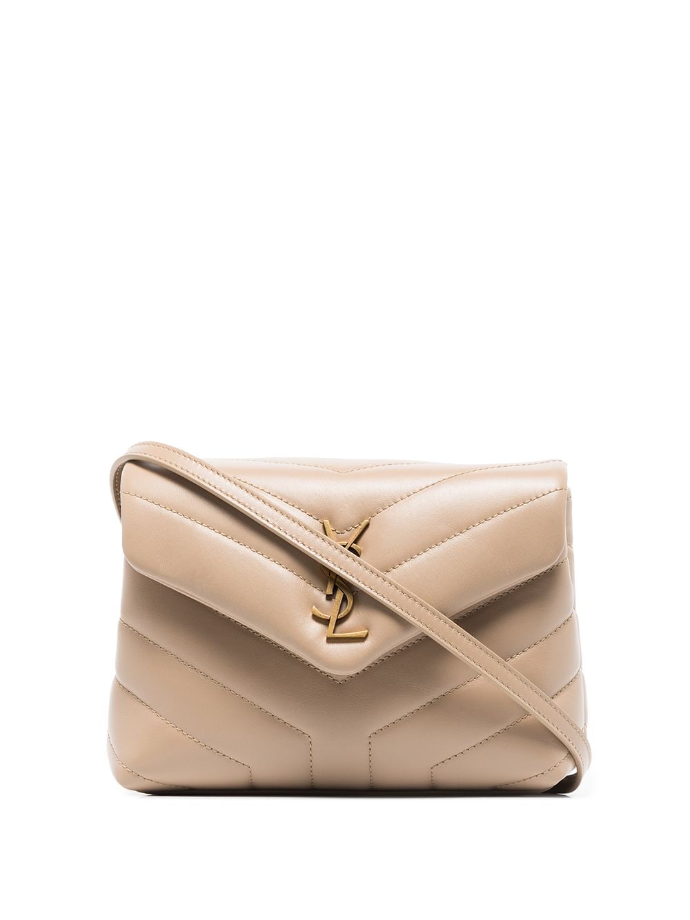 • Saint Laurent’s monogram is as iconic as the brand itself, needing no introduction. Here, the YSL initials adorn the chevron-quilted silhouette of the equally iconic Loulou shoulder bag.