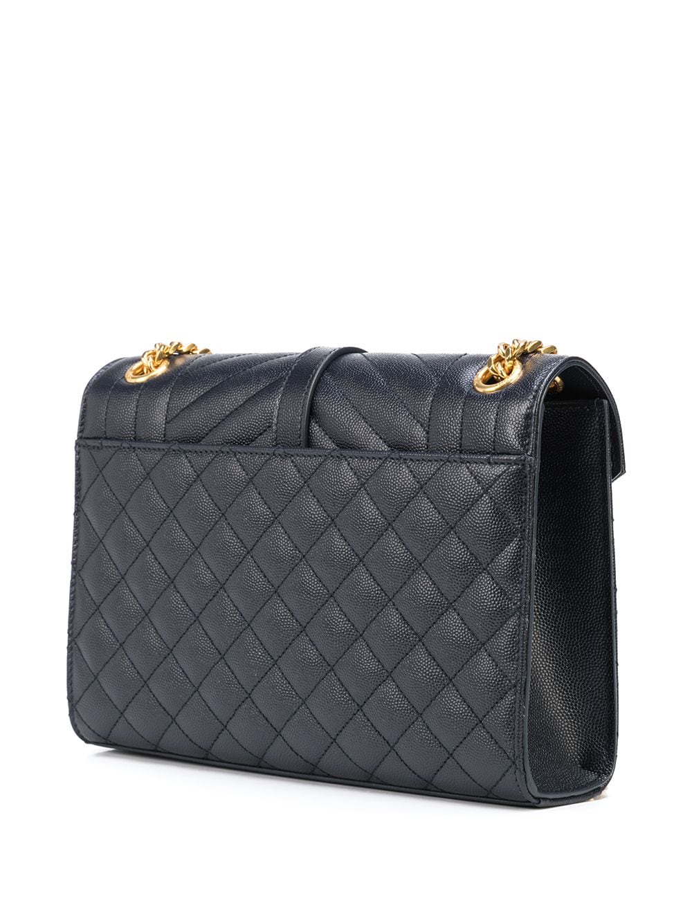 • A timeless style from Saint Laurent, the Envelope bag is an instant classic. The quilted design is presented here in a deep blue hue and punctuated with the signature YSL plaque in a lavish gold tone.