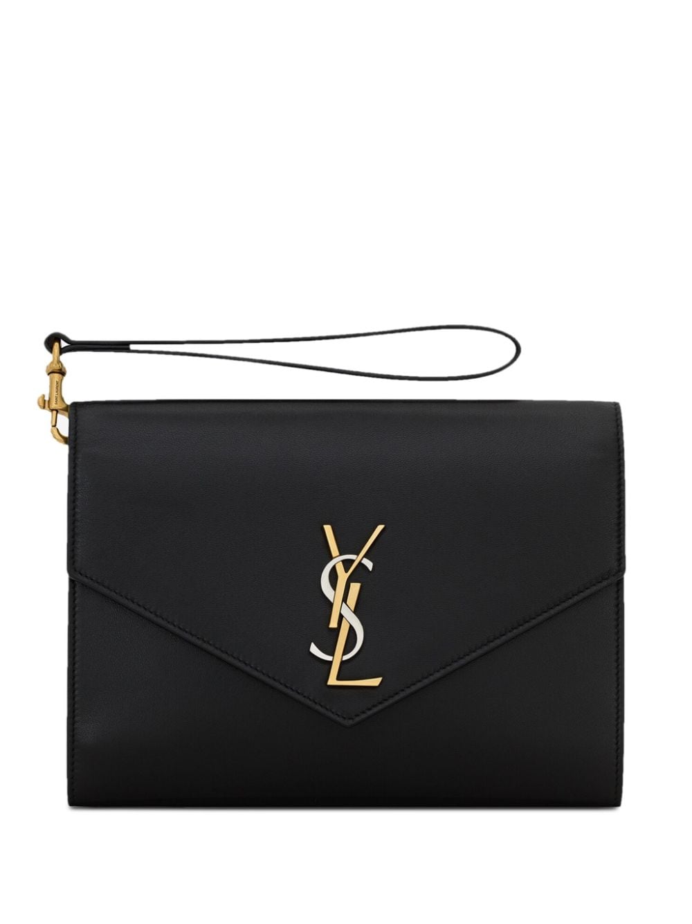 Saint Laurent excels at creating lust-worthy accessories that perfectly balance exquisite craftsmanship and heritage. Appearing in smooth black leather, this clutch is detailed with the signature YSL plaque on the foldover flap. The wrist strap can be detached for the versatile use of the bag.