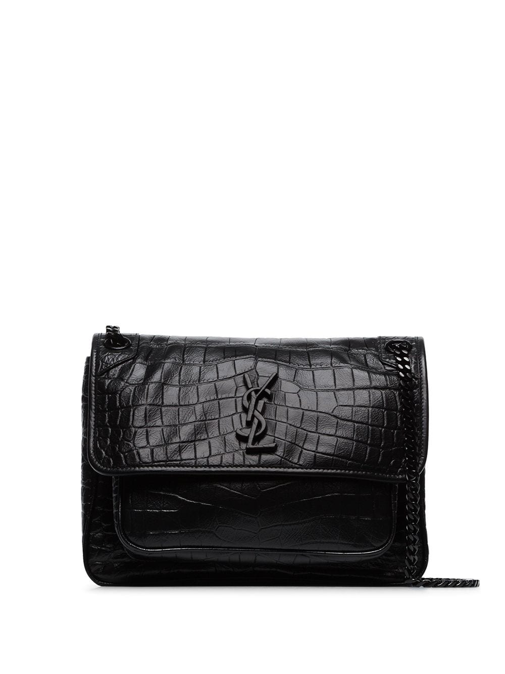 Are you off on safari? Then look the part with this exotic crocodile embossed effect leather Niki medium shoulder bag from Saint Laurent. All you need now is a khaki ensemble and your good to go. Featuring a foldover top with magnetic closure, an internal zipped pocket, a front logo plaque, a chain shoulder strap and an embossed crocodile effect.
