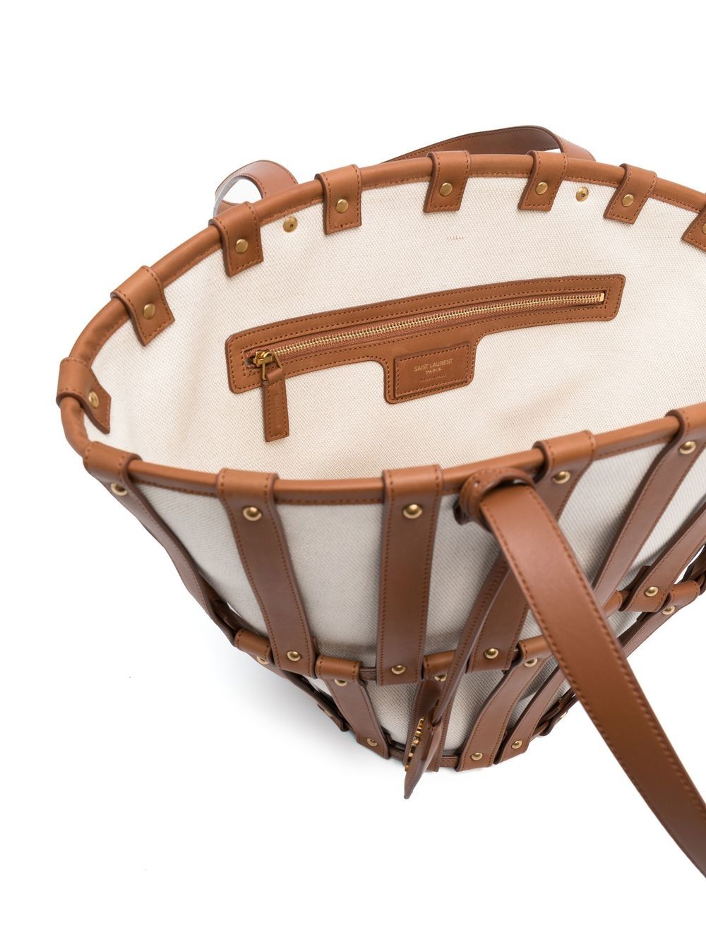 Quality craftsmanship has always remained a priority for the 1961-established fashion house, Saint Laurent. Part of the Panier family, this basket tote bag from the AW22 collection is made from canvas layered with a smooth leather cage.