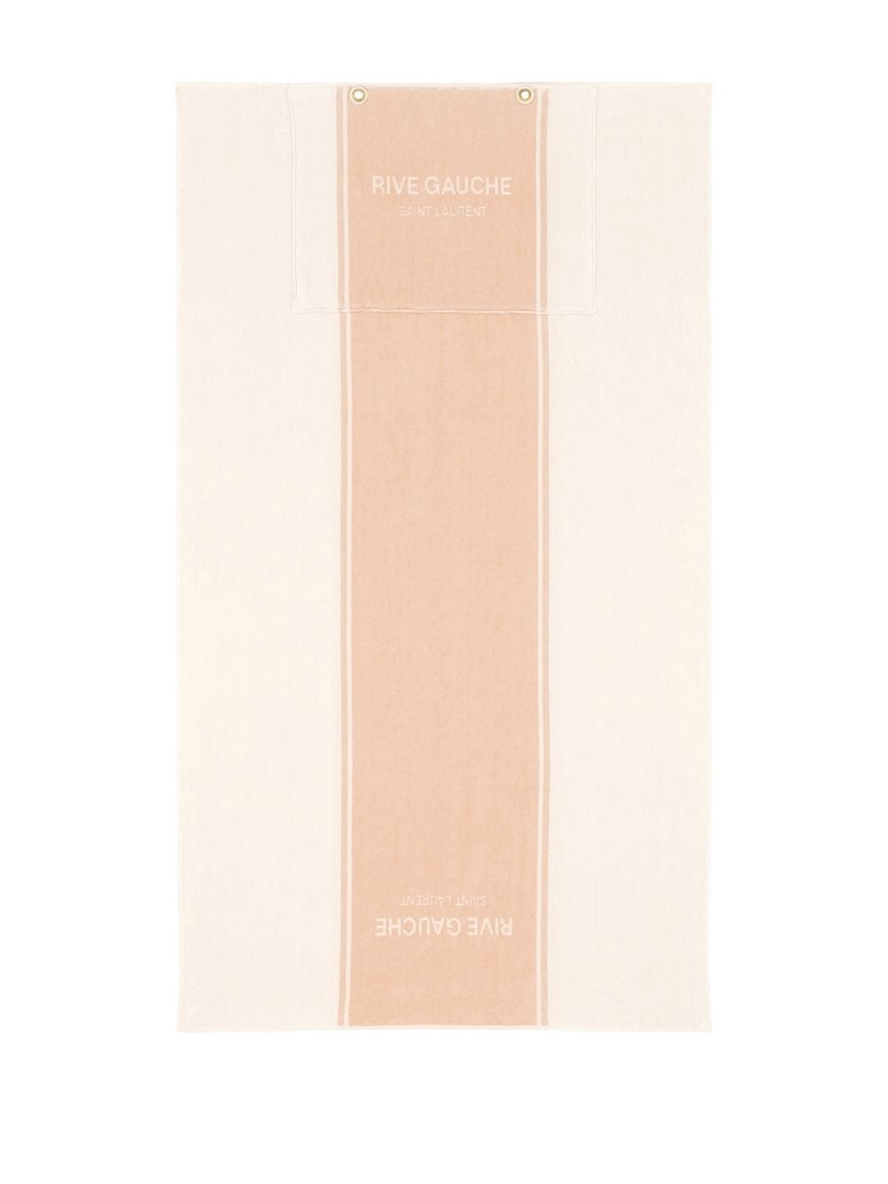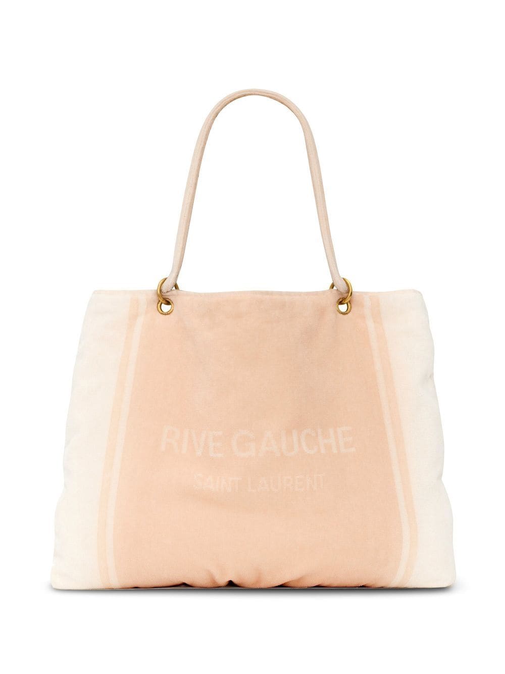 Crafted in a peach and cream terrycloth finish, this Saint Laurent Rive Gauche tote bag is embroidered with a logo to its front. The two-tone style is complete with two rounded top handles for a classic touch.