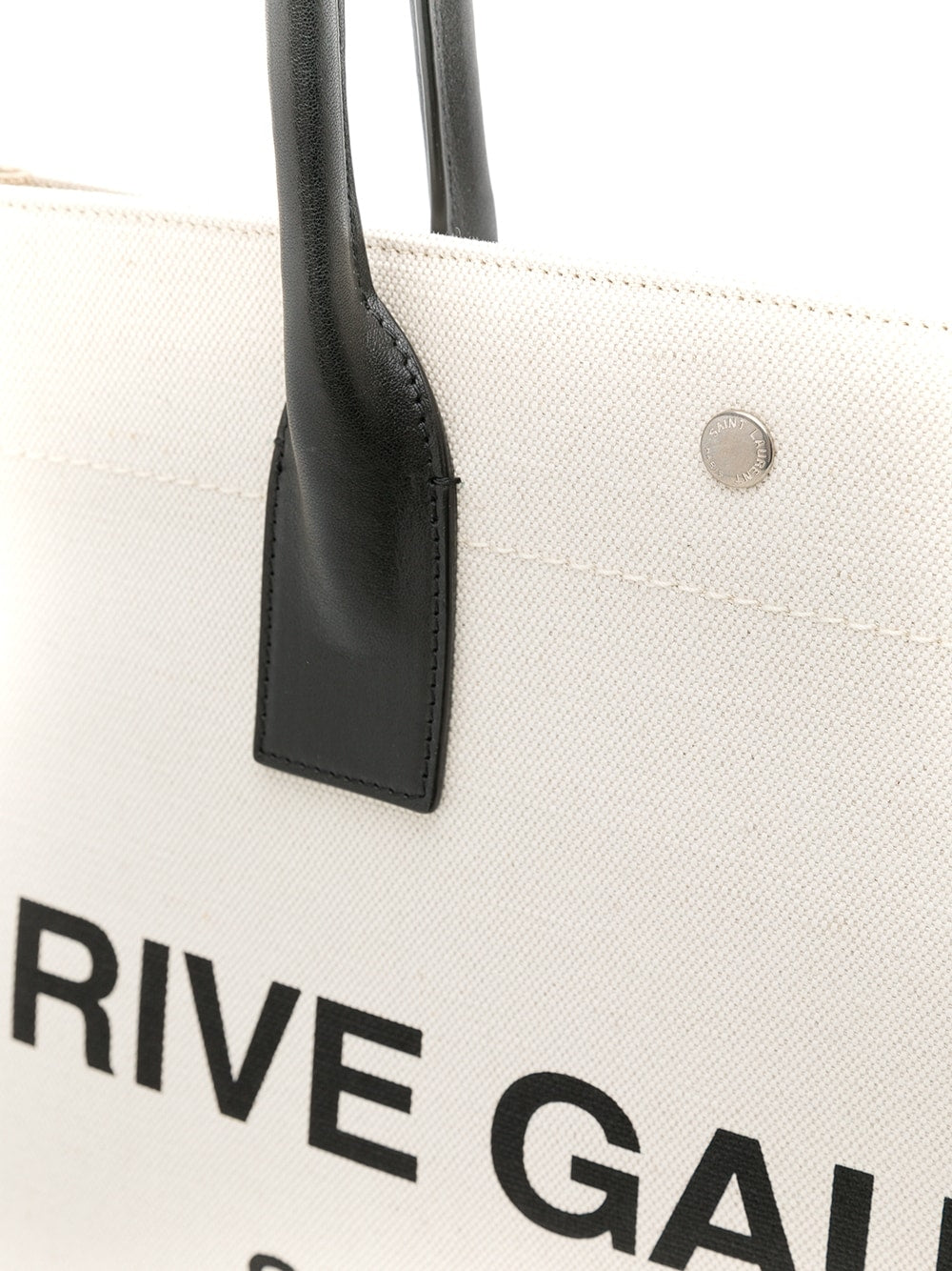 • An iconic Saint Laurent hallmark, the Rive Gauche tote bag is where functionality and timeless elegance meet. Constructed from soft cotton, this bag is carried by two leather-made top handles for added practicality. A recognisable front logo adds some branded appeal to this functional design.