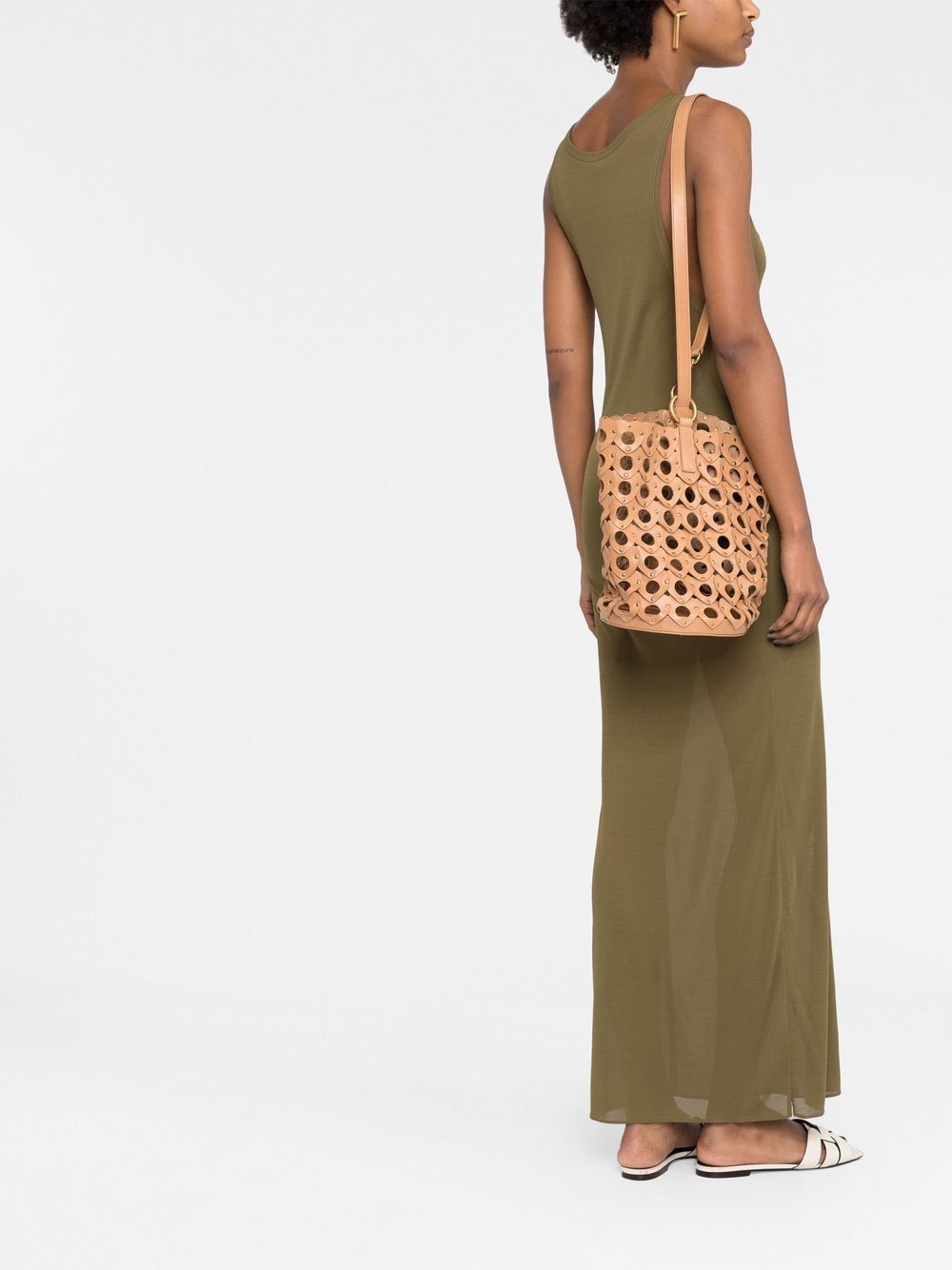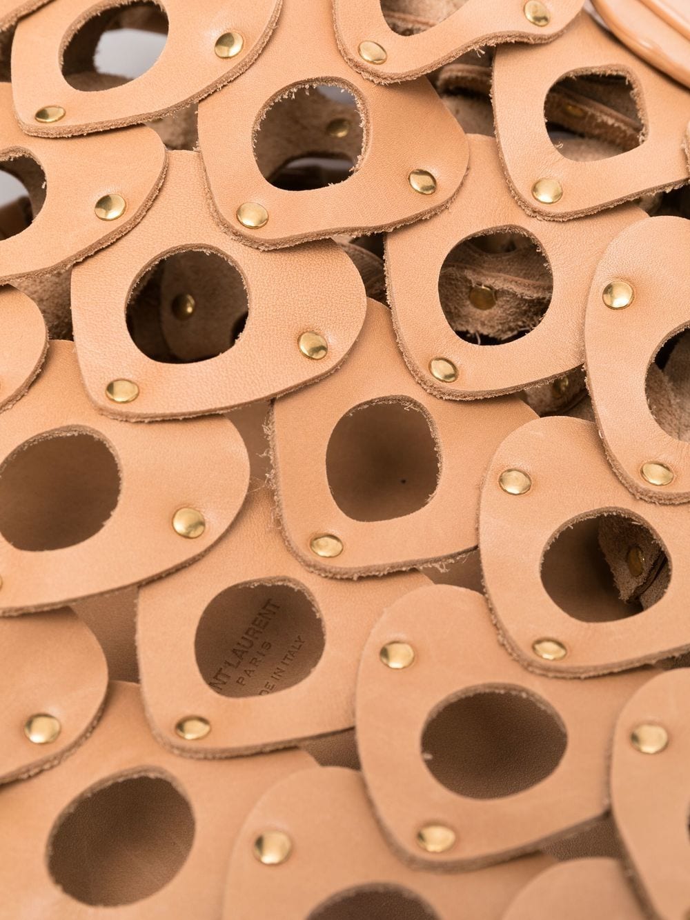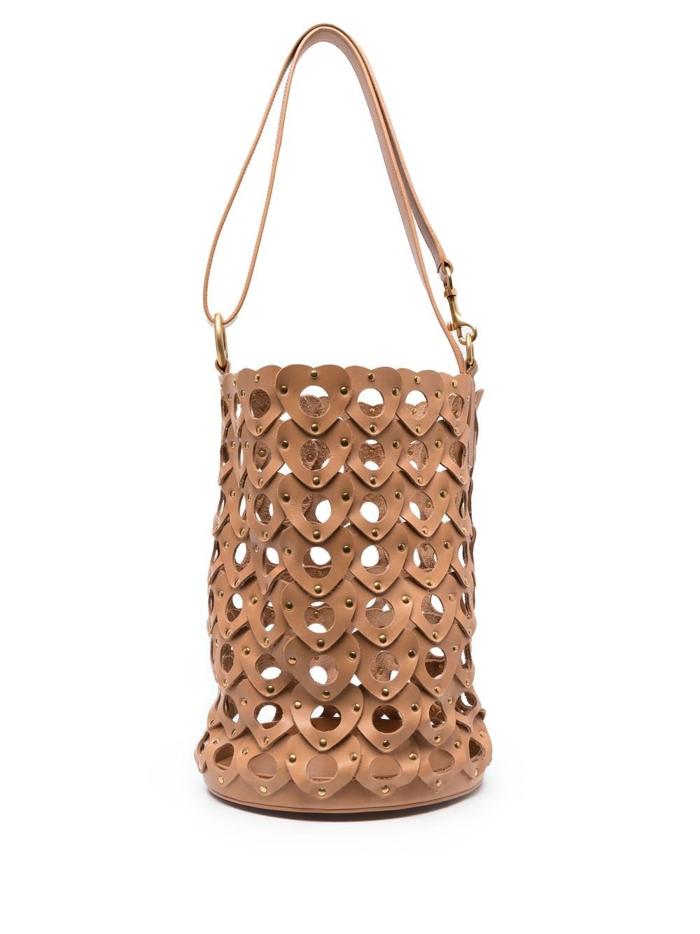 • As its name suggests, Saint Laurent’s Seau Coeur bag mimics a woven style with its cut-out hearts construction creating the bucket silhouette. The pieces are joined by gold-stone studs that accent the shapes.