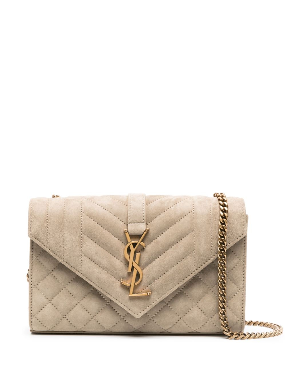 Be the first to review “Saint Laurent small Envelope suede quilted shoulder bag”