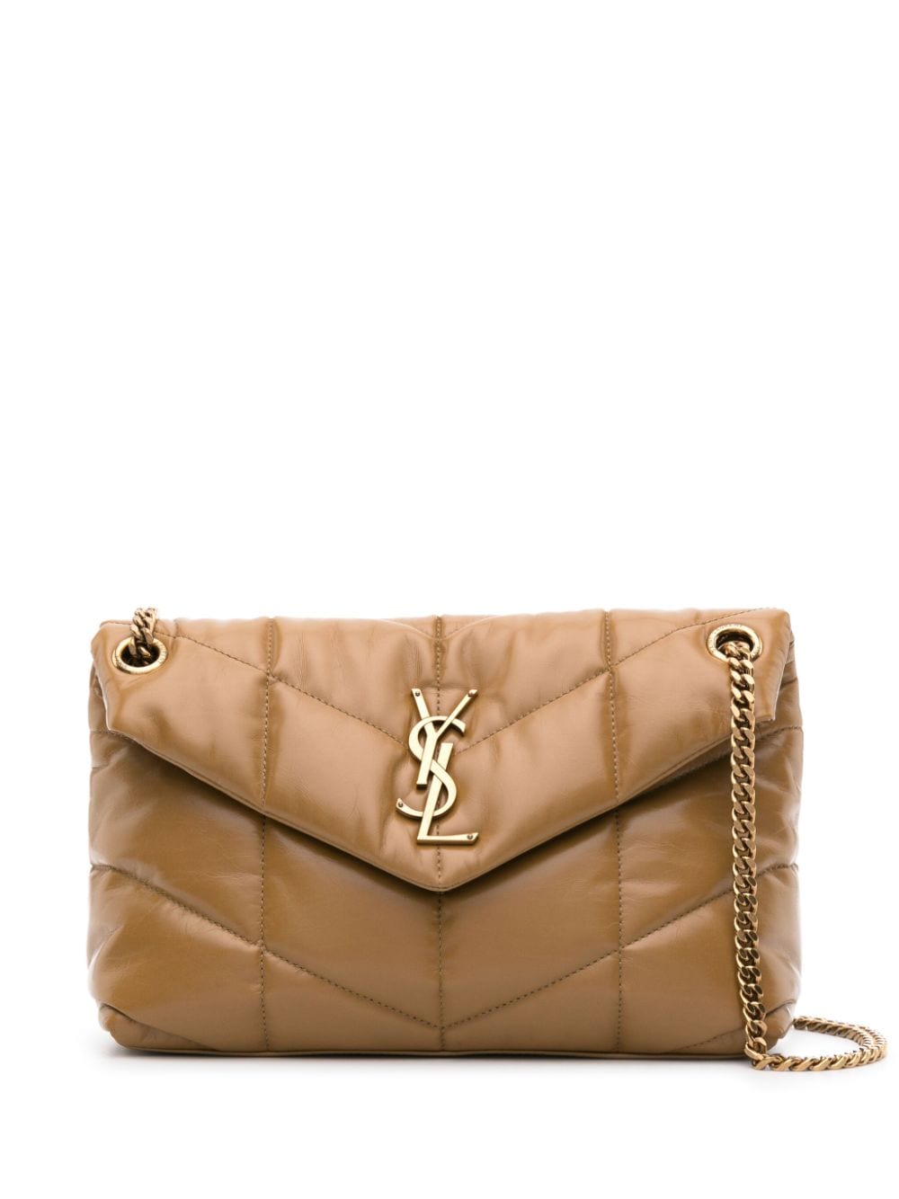 This small iteration of Saint Laurent’s Puffer shoulder bag boasts a quilted construction. Made from smooth brown leather, it’s shaped to a foldover silhouette and signed off with signature Cassandre hardware.