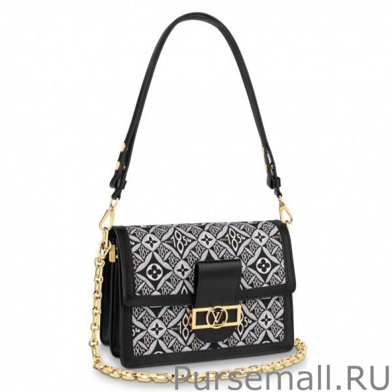 The Dauphine MM handbag is made from the House new Jacquard Since 1854 textile, with a woven pattern of Monogram Flowers, LV Initials, and 1854s, a reference to the year of founding. Its elegant design, numerous inside compartments, and removable strap make it a great everyday bag.