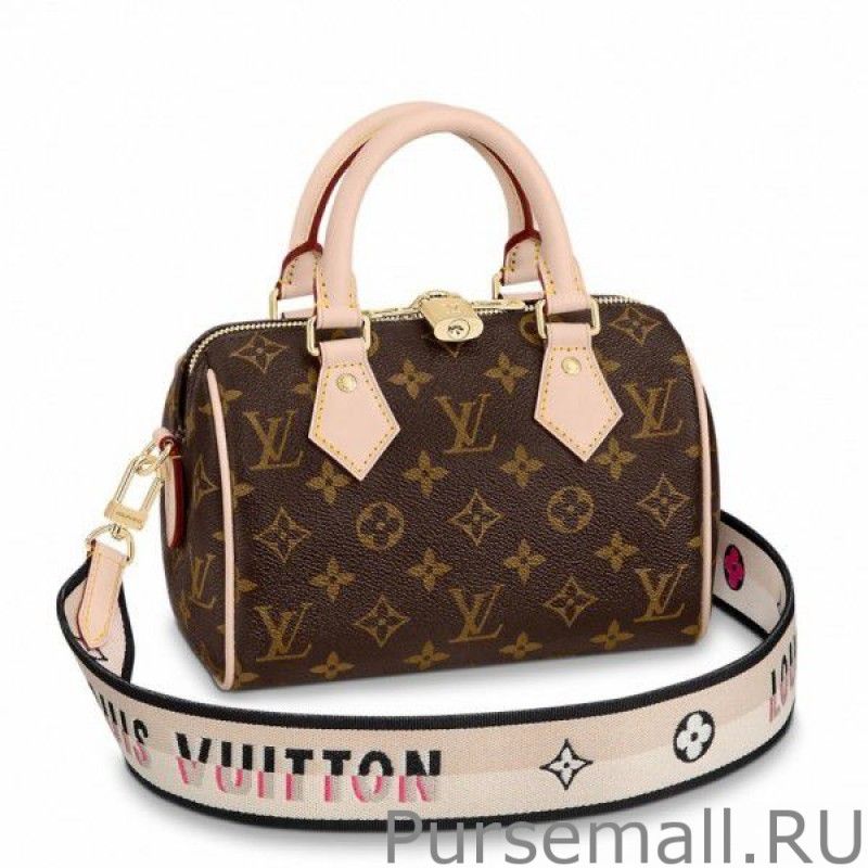 Like a diminutive version of the House’s historic Speedy travel bag, the Speedy Bandoulière 20 handbag is crafted from Monogram canvas with natural cowhide trim. In addition to the rolled leather top handles, there’s a wide detachable textile strap with a woven signature. This bag’s classic design is completed with red textile lining.