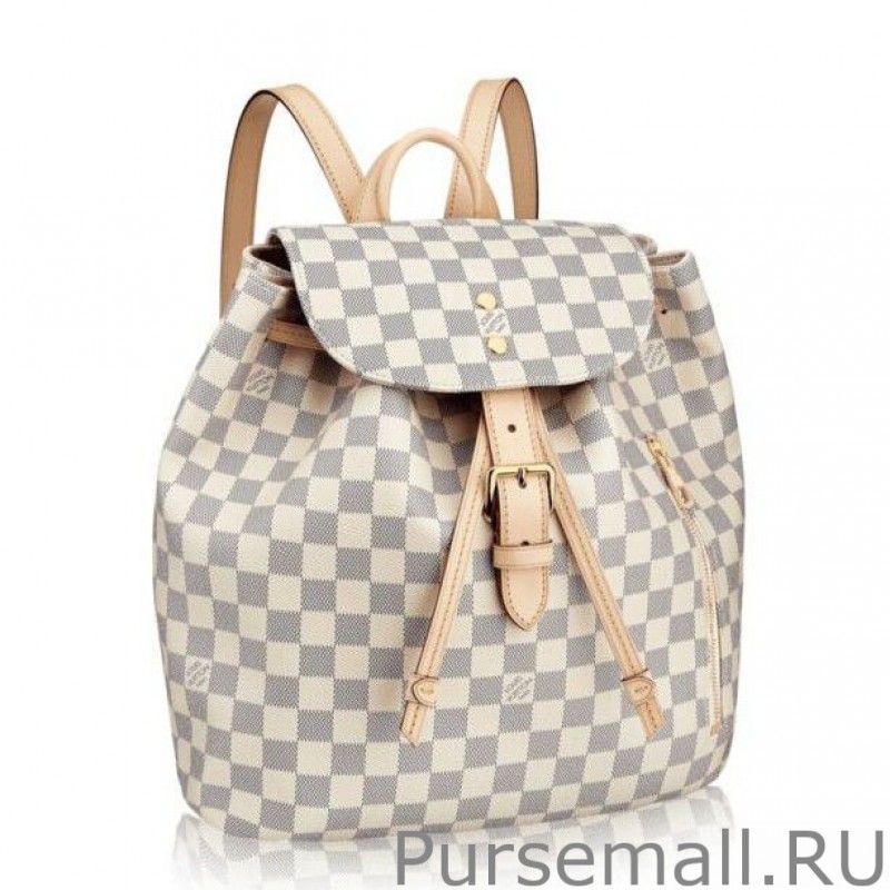Whether you’re a functionalist or a fashion fetishist, the feminine Sperone backpack in Damier Azur canvas is your go-to urban travel companion. It combines a roomy interior with the design details you’d expect from superior craftsmanship.
