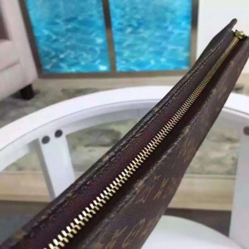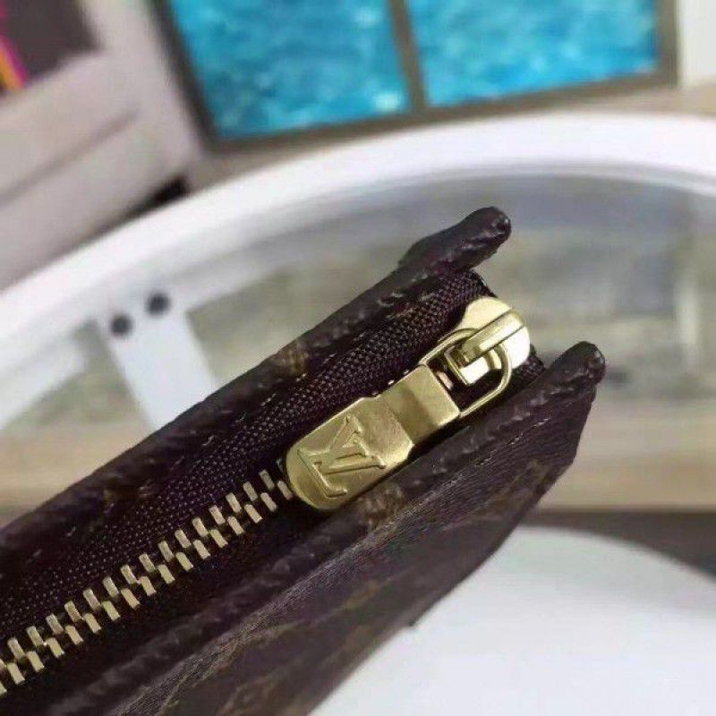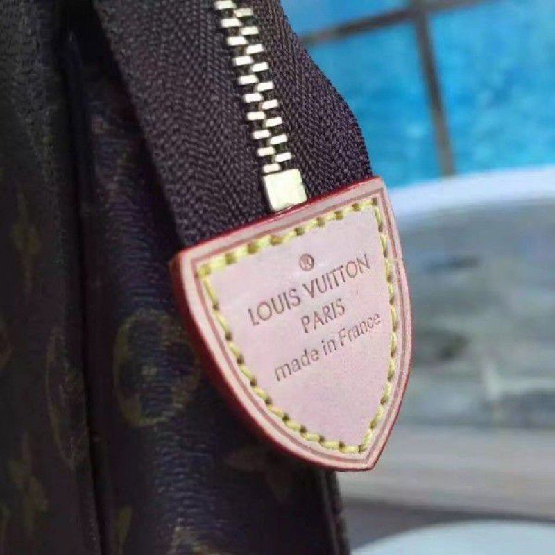 Monogram canvasGolden brass zip closure with leather tabWashable lining, gusset sides