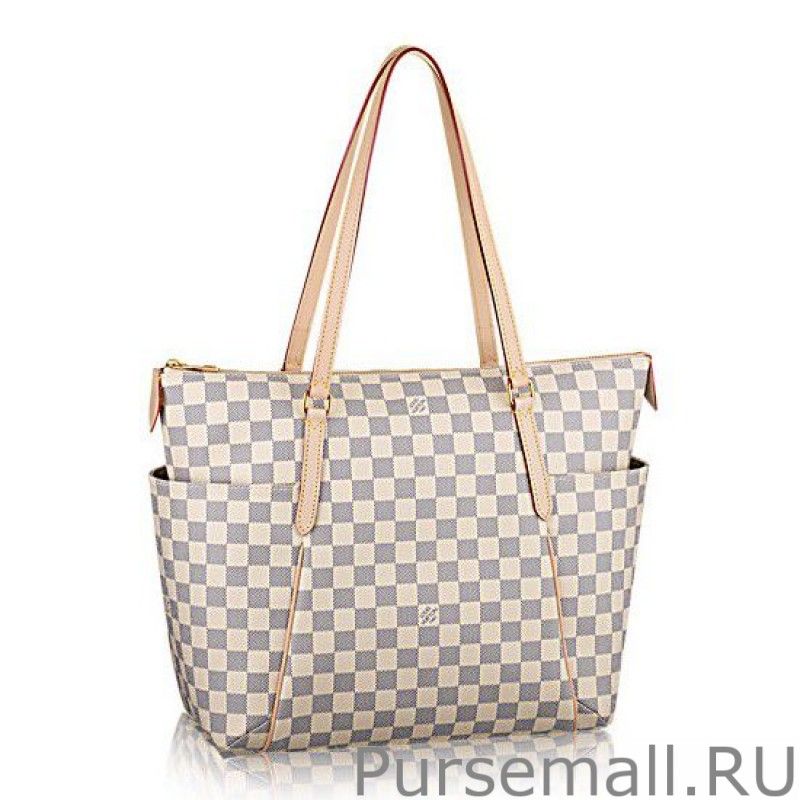 The ultimate city tote in Damier canvas with pockets galore. Magazines, tickets, sunglasses are all easily within grasp, while the bag itself is a comfortable fit for any shoulder.